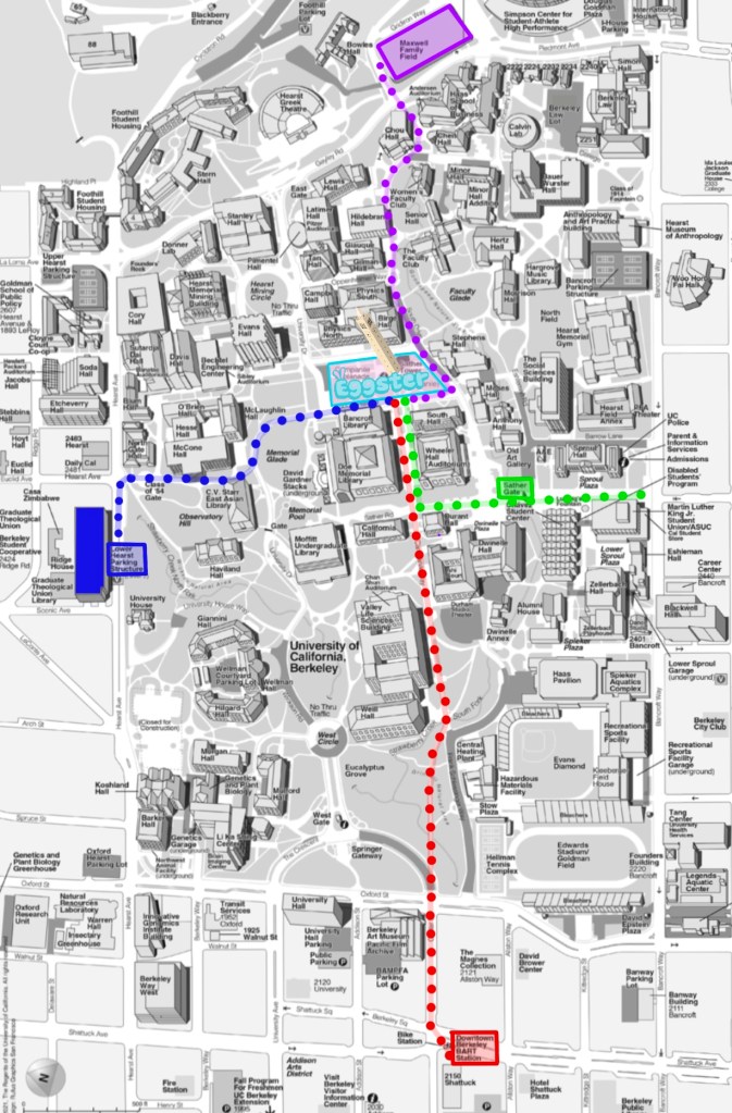 🟢 If you’re arriving via Bus stop or find parking near Telegraph or Bancroft Way (south of campus)